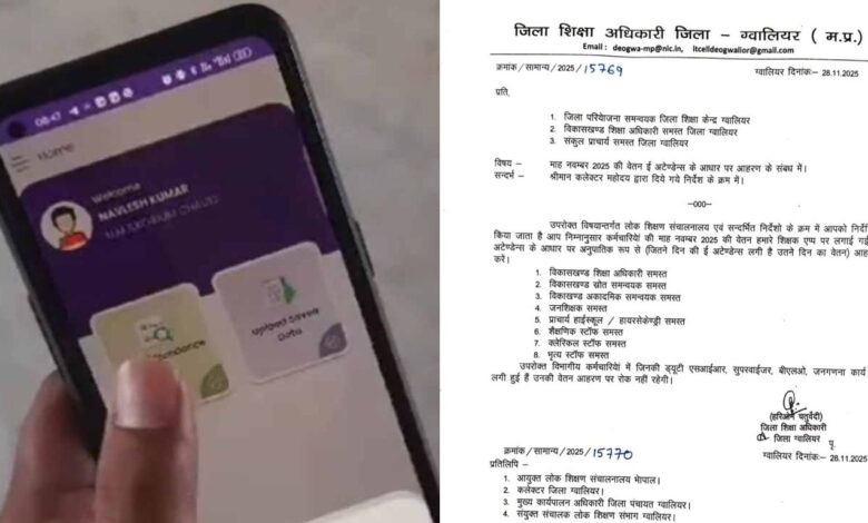 MP News: मध्य प्रदेश के ग्वालियर में अब टीचर्स को ई-अटेंडेंस के आधार पर ही सैलरी मिलेगी. कलेक्टर के निर्देश पर जिला शिक्षा अधिकारी(DEO) हरिओम चतुर्वेदी ने आदेश जारी किया है. अपने आदेश में डीईओ ने साफ तौर पर कहा है कि ई-अटेंडेंस के आधार पर नवंबर महीने की सैलरी दी जाएगी. डीईओ ने जिले के सभी डीपीसी, बीईओ और संकुल प्राचार्यों को आदेश जारी किया है.