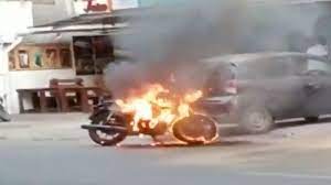 3 बदमाशों ने एक पल्सर बाइक को किया आग के हवाले