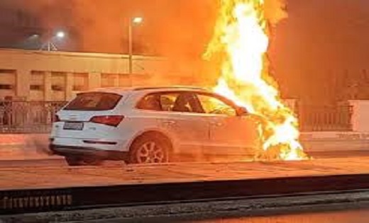 कार में आग लगने से 4 घायल…रायपुर लौट रहे परिवार हुए हादसे का शिकार