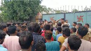 तीस फीट ऊंचाई से गिरकर एक श्रमिक की मौत, ग्रामीण फैक्ट्री के सामने कर रहे हंगामा