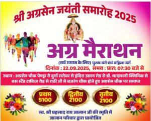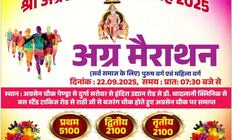 पेंड्रा में अग्रसेन जयंती पर 22 सितंबर को अग्र मैराथन दौड़ का आयोजन..