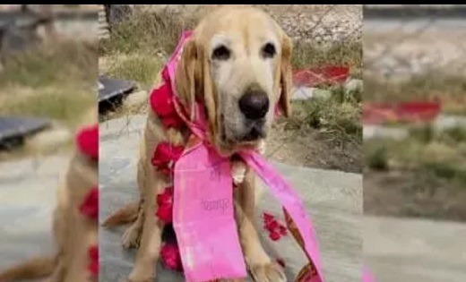 पुलिस अधिकारियों के साथ कुत्ते का भी तबादला, फूल-माला पहना कर दी विदाई