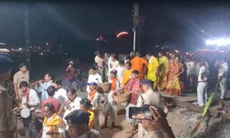 इस परंपरा का सबसे अनोखा दृश्य तब सामने आया, जब शोभायात्रा मुंबई–हावड़ा मुख्य रेल मार्ग पर पहुंची। जहां आम दिनों में ट्रेनों की रफ्तार कभी नहीं रुकती, वहीं इस अवसर पर आस्था के सम्मान में मेगा ब्लॉक लगाया गया। दोनों ओर से आने वाली ट्रेनों को रोक दिया गया और कुछ समय के लिए पटरियों पर सन्नाटा छा गया।