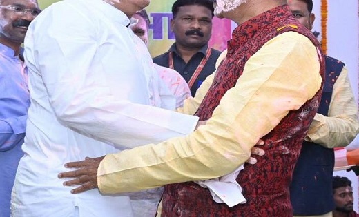 विधानसभा परिसर में ‘होली मिलन समारोह’ का आयोजन, मुख्यमंत्री बघेल को गले लगाकर विधानसभा अध्यक्ष महंत ने दी बधाई