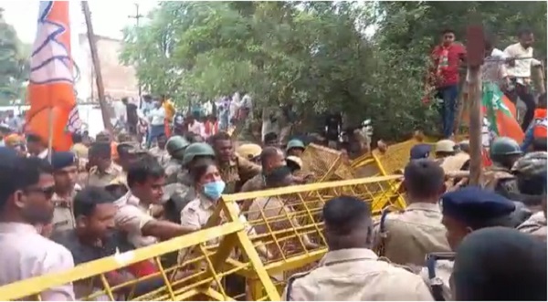 पुलिस और भाजपाइयों के बीच झूमाझटकी, पुलिसकर्मियों को आई चोटे, 450 भाजपा कार्यकर्ताओं को गिरफ्तार कर ले जाया गया सेंट्रल जेल