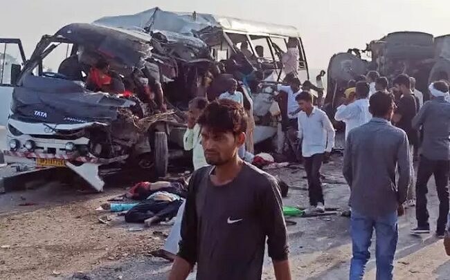 बड़ा हादसा : बस और ट्रक की भीषण टक्कर, हादसे में 8 की मौत, दो दर्जन से अधिक लोग घायल