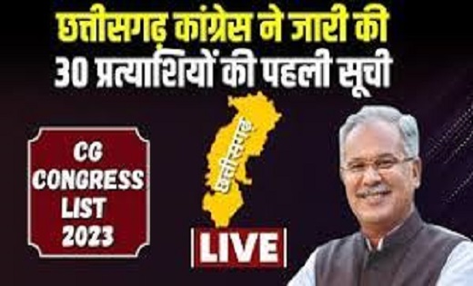 रायपुर। नवरात्रि के पहले दिन आखिरकार छत्तीसगढ़ कांग्रेस ने प्रत्याशियों की पहली लिस्ट जारी कर ही दी। बता दें कि इस लिस्ट में पहले 30 प्रत्याशियों के नामों की घोषणा की गई है। पहले चरण की 19 सीटों के साथ अन्य 11 सीटों के लिए प्रत्याशियों के नाम जारी किए गए हैं। 6 नए चेहरों को मौका दिया गया है साथ ही 7 विधायकों की टिकट कटी है। जगदलपुर सीट पर नाम की घोषणा नहीं की गई है।