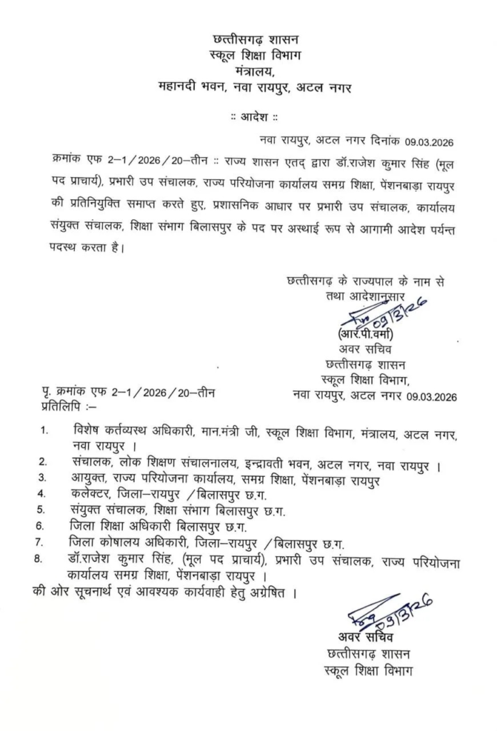 BREAKING : जेडी कार्यालय में फेरबदल, डॉ राजेश कुमार सिंह बने प्रभारी उप संचालक, आदेश जारी