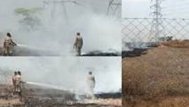 दुर्ग : हाईटेंशन तार के नीचे खेत में लगी भीषण आग , फायर ब्रिगेड की टीम ने पाया काबू