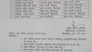 बिलासपुर: छत्तीसगढ़ के बिलासपुर जिले में पुलिस प्रशासन ने एक बार फिर बड़ा फेरबदल किया है। एसएसपी रजनेश सिंह ने…