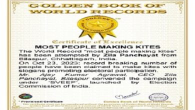 BILASPUR : जिले में स्वीप गतिविधियों को मिली बड़ी कामयाबी, गोल्डन बुक ऑफ वर्ल्ड रिकार्ड में शामिल हुए स्वीप के चार आयोजन