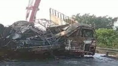 चालक की जलकर मौत…खड़ी ट्रक को दो ट्रकों ने मारी ठोकर