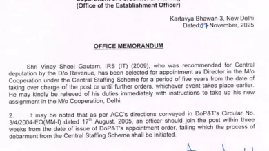 केंद्र में IAS अफसरों की बड़ी तैनाती: सहकारिता, पेट्रोलियम और MSME मंत्रालयों में पदस्थापना
