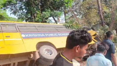 राजधानी में कृष्णा पब्लिक स्कूल की बस अनियंत्रित होकर पलटी, बड़ा हादसा टला
