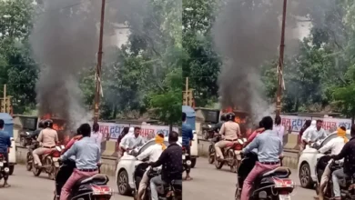 रायपुर में DRM ऑफिस के पास नगर निगम की गाड़ी में आग, अफरा-तफरी का माहौल