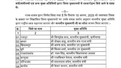 स्वतंत्रता दिवस 2025 : छत्तीसगढ़ में सीएम विष्णु देव साय और केंद्रीय राज्यमंत्री तोखन साहू झंडा फहराएंगे