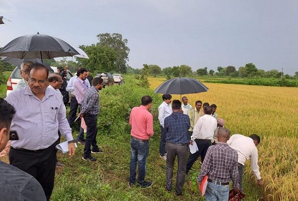 खैरागढ़। नवगठित जिला-खैरागढ़-छुईखदान-गंडई में राष्ट्रीय खाद्य सुरक्षा मिशन योजनांतर्गत केन्द्रीय दल के द्वारा आज सोमवार को जिले के ग्राम-टेकापार विकासखण्ड-खैरागढ़ का भ्रमण किया गया। केन्द्रीय दल ने राष्ट्रीय खाद्य सुरक्षा मिशन योजनांतर्गत कृषकों के प्रक्षेत्र में लगे प्रदर्शन का निरीक्षण किया। प्रदर्शन अंतर्गत 43 कृषकों के द्वारा 50 हेक्टे. के क्लस्टर में इंदिरा जिंक राईस खेतों में लगाया गया था जिसका अवलोकन केन्द्रीय दल के द्वारा किया गया। साथ ही केन्द्रीय दल के द्वारा मेड़ो पर लगी अरहर फसल की सराहना भी की गई।