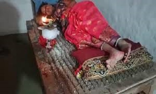 CG: लोहे की 21 सौ कील पर लेटी माता की भक्त, कहा- सपने में आईं मां दुर्गा