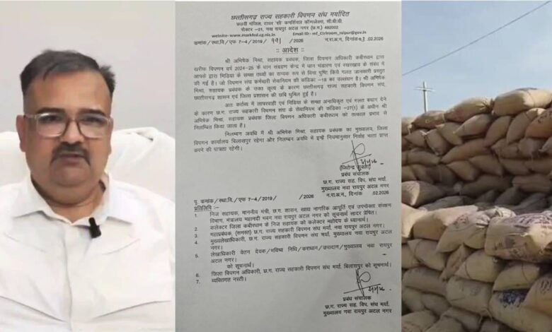 कवर्धा। छत्तीसगढ़ में धान खरीदी की मियाद दो दिनों के लिए बढ़ाई गई है. इस बीच कवर्धा में धान पर अजब गजब बयान देने वाले डीएमओ अभिषेक मिश्रा पर बड़ी कार्रवाई हुई है. उन्होंने कवर्धा में 7 करोड़ रुपये के धान शॉर्टेज केस में यह बयान दिया था. इस मामले में 3 फरवरी 2026 को प्रशासन ने बड़ी कार्रवाई करते हुए जिला विपणन अधिकारी (डीएमओ) अभिषेक मिश्रा को तत्काल प्रभाव से निलंबित कर दिया है. यह कार्रवाई प्रबंध संचालक, राज्य स्तर रायपुर द्वारा मीडिया में भ्रामक जानकारी देने के आरोप में की गई है. निलंबन के बाद जिला प्रशासन में हड़कंप की स्थिति बनी हुई है. आदेश की कॉपी बुधवार को जारी हुई है.