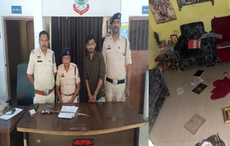 बिलासपुर। न्यायधानी से हैरान कर देने वाला मामला सामने आया है। बिलासपुर में के तिफरा क्षेत्र में एक युवक ने घर में घुसकर जमकर उत्पात मचाया। आरोपी तलवार लेकर घर में दाखिल हुआ और देवी-देवताओं की तस्वीरों को अपमानजनक तरीके से फेंक दिया। विरोध करने पर महिला के पति और बेटे के साथ मारपीट की गई। घटना की शिकायत पर सिरगिट्टी पुलिस ने आरोपी के खिलाफ गंभीर धाराओं में मामला दर्ज किया था। अब पुलिस ने त्वरित कार्रवाई करते हुए आरोपी को गिरफ्तार कर लिया है.