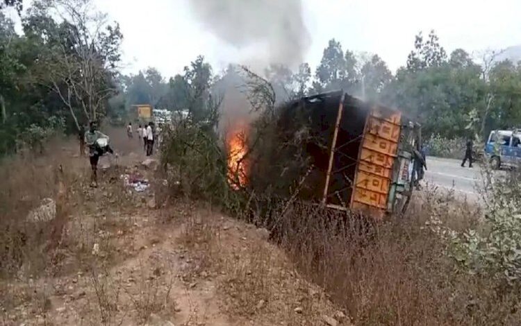CG -दर्दनाक सड़क हादसा…ट्रक-कार की टक्कर से लगी भीषण आग, जिंदा जले 2 युवक…..