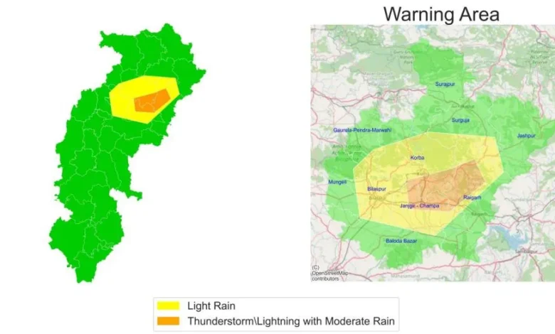 छत्तीसगढ़ मौसम अपडेट: कई जिलों में बारिश की चेतावनी, जानें कहां होगी तेज बरसात