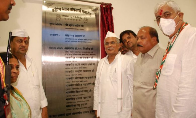 मुख्यमंत्री बघेल ने किया नव निर्मित कांग्रेस भवन का उद्घाटन