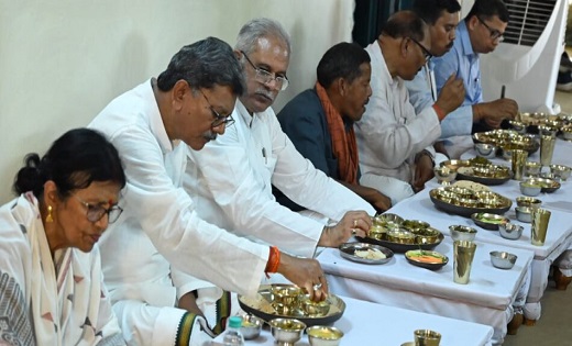 किसान सुभाष के घर मुख्यमंत्री बघेल ने स्वादिष्ट छत्तीसगढी व्यंजन भोजन का लिया स्वाद