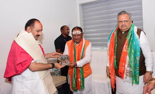 मुख्यमंत्री विष्णु देव साय ने सुप्रसिद्ध कथावाचक पंडित प्रदीप मिश्रा से की सौजन्य मुलाकात