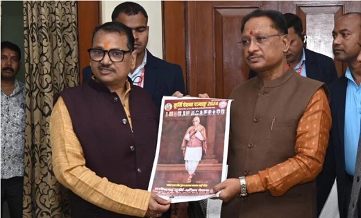 रायपुर। मुख्यमंत्री विष्णु देव साय ने आज राज्य अतिथि गृह पहुना में छत्तीसगढ़ कुर्मी क्षत्रिय चेतना मंच द्वारा प्रकाशित कैलेण्डर का विमोचन किया।मुख्यमंत्री ने विमोचन के बाद प्रकाशित कैलेंडर के लिए समाज के लोगो को बधाई दी।