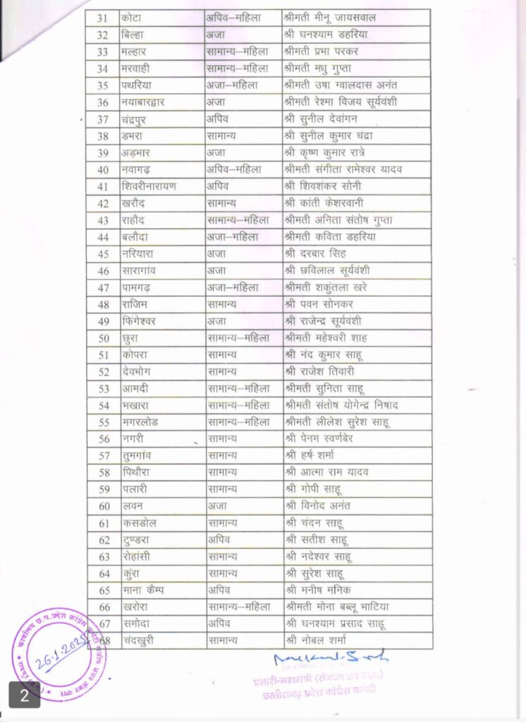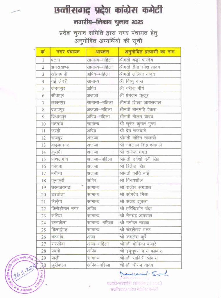 निकाय चुनाव: कांग्रेस ने नगर पंचायत अध्यक्ष प्रत्याशियों की लिस्ट जारी की , देखें नाम