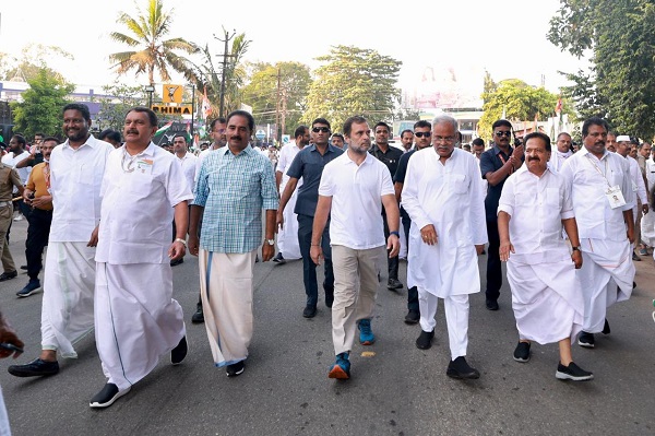 केरल। कांग्रेस की भारत जोड़ो पदयात्रा आज कोल्लम से फिर शुरू हुई। इस यात्रा में छत्तीसगढ़ के मुख्यमंत्री भूपेश बघेल कांग्रेस नेता राहुल गांधी के साथ भी शामिल हुए। मुख्यमंत्री बघेल ने राहुल गांधी के साथ सुबह सात बजे से यात्रा शुरू की।