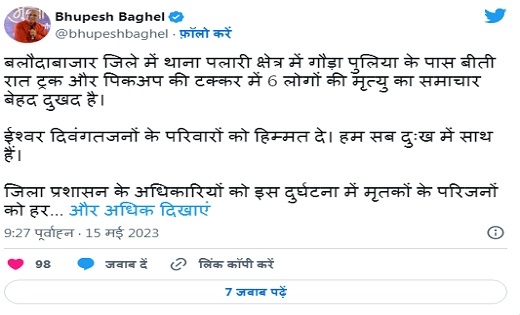 सड़क हादसे में 6 लोगों की दर्दनाक मौत पर CM भूपेश ने ट्वीट कर जताया दुख