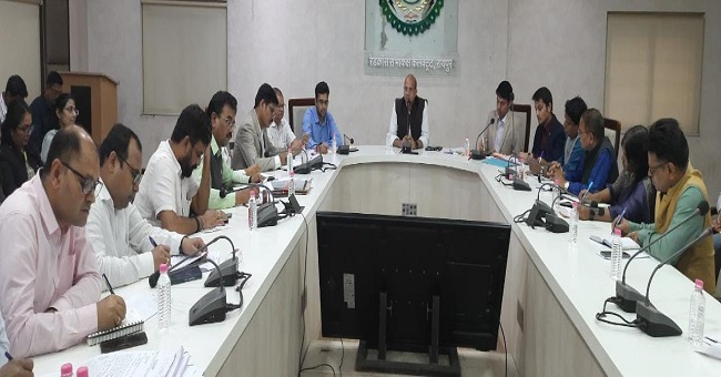 रायपुर। कलेक्टर डॉ सर्वेश्वर भुरे ने आज यहां रेडक्रास सभाकक्ष में सप्ताहिक समय-सीमा की बैठक लेकर विभागीय कामकाज की समीक्षा की। उन्होंने राज्य सरकार की महत्तवपूर्ण योजनाओं-स्वामी आत्मानंद इंग्लिश मीडियम स्कूल, सुपोषण अभियान, बिजली बिल हॉफ, मुख्यमंत्री शहरी स्लम स्वास्थ्य योजना, राशन कार्ड, राजीव गांधी आश्रय पट्टा योजना, गोधन न्याय योजना, धान खरीदी सहित अन्य योजनाओं के क्रियान्वयन की जानकारी लेकर अधिकारियों को आवश्यक दिशा निर्देश दिए। उन्होंने कहा कि आगामी समय में मुख्यमंत्री द्वारा जिले में भेंट-मुलाकात का कार्यक्रम प्रस्तावित है। उन्होंने अधिकारियों से कहा कि आम नागरिकों को शासन की योजनाओं का लाभ समय में दिलाना सुनिश्चित करें।