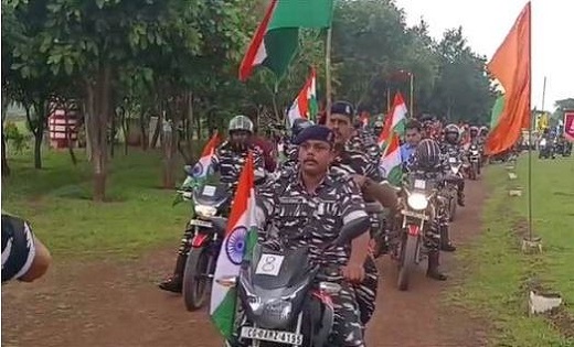 तुलसी बाराडेरा सीआरपीएफ कैंप से 65वीं बटालियन की हर घर तिरंगा बाइक रैली निकाली गई। देशभक्ति के रंग में रंगे सीआरपीएफ के अफसर और जवान बाइक में तिरंगा लिए इलाके का भ्रमण कर रहे हैं। यह तिरंगा यात्रा मंदिर हसौद, लाभांडी होते हुए मरीन ड्राइव में खत्म होगी। यात्रा का गांव और शहर में जगह-जगह स्वागत होगा। सीआरपीएफ पिछले तीन साल से 14 अगस्त को तिरंगा यात्रा निकाल रही है।