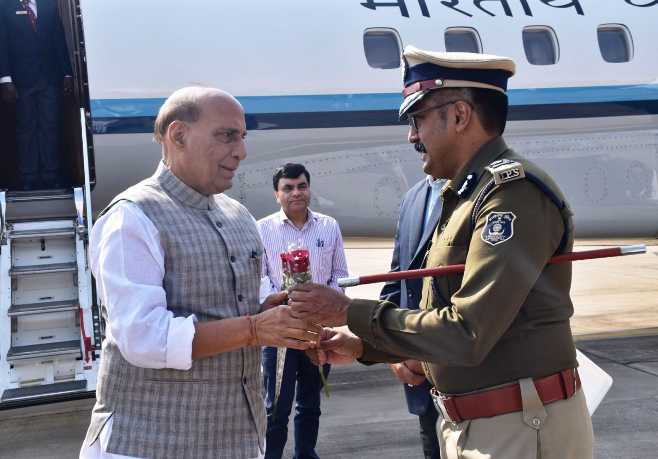 जगदलपुर पहुंचे रक्षामंत्री राजनाथ सिंह, एयरपोर्ट में वरिष्ठ अधिकारियों ने किया स्वागत