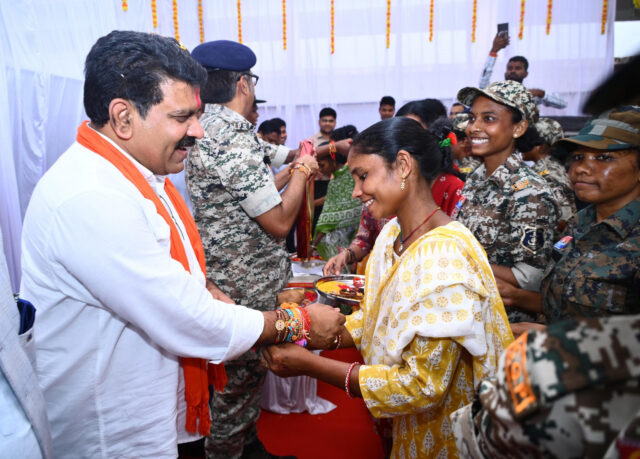 रायपुर : रक्षाबंधन के पावन अवसर पर उपमुख्यमंत्री श्री विजय शर्मा ने सुकमा में एक भावनात्मक और ऐतिहासिक कार्यक्रम में भाग लिया। नक्सल पुनर्वास केंद्र सुकमा में आत्मसमर्पित महिला नक्सलियों और बस्तर फाइटर के दीदियों ने उपमुख्यमंत्री को राखी बांधकर भाईचारे, विश्वास और शांति का सशक्त संदेश दिया। कार्यक्रम के दौरान उपमुख्यमंत्री शर्मा ने कहा कि विगत माह जब मैं सुकमा आया था तो मैंने पुनर्वास केंद्र की बहनों से वादा किया था कि रक्षाबंधन का पर्व आपके साथ मनाऊँगा। आज रक्षाबंधन के पावन अवसर पर मेरा यह वादा पूरा हुआ। सुकमा में रक्षाबंधन का यह अवसर केवल एक त्योहार नहीं, बल्कि सामाजिक जुड़ाव और स्थायी शांति का प्रतीक है। आप सभी को मैं यह विश्वास दिलाता हूँ कि जब तक आपका भाई है आपको चिंता करने या डरने की कोई बात नहीं है। आप अपने परिचितों को भी बताइए कि उधर कुछ नई रखा है पुनर्वास करें और समाज की मुख्य धारा में जुड़ें। आपके लिए प्रशिक्षण, खेल, मूवी, सांस्कृतिक कार्यक्रम आदि की व्यवस्था की जाएगी। आप सबके संपूर्ण व्यवस्थापन की जिम्मेदारी हमारी है। इसके साथ ही आप सभी को जल्द ही रायपुर भ्रमण में लेकर जाएँगे। कार्यक्रम के दौरान उपमुख्यमंत्री श्री विजय शर्मा ने आत्मसमर्पित माओवादियों से बातचीत की और कहा की आपका कोई सगा संबंधी किसी जेल में बंद है तो हमें बताना हम आपको उनसे मिलवाने की सम्पूर्ण व्यवस्था करेंगे।