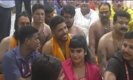 उज्जैन। विश्व प्रसिद्ध श्री महाकालेश्वर मंदिर में आज दूसरे सावन सोमवार के सुबह भारतीय क्रिकेटर उमेश यादव बाबा महाकाल की भस्म आरती में शामिल हुए और बाबा महाकाल से मनोकामना भी की। बता दें कि, क्रिकेटर उमेश यादव बाबा महाकाल के दर्शन करने के लिए आते रहते हैं।
