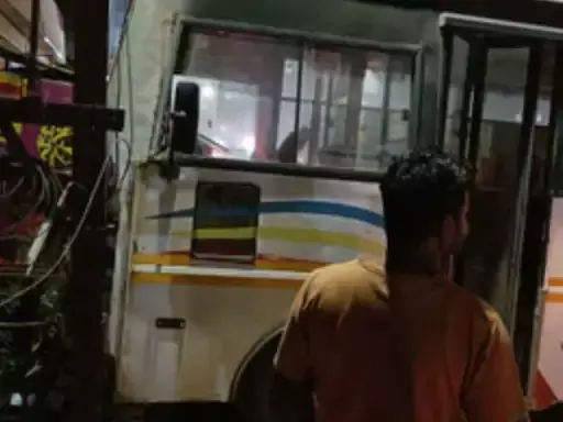 नशे में बस चालक ने मारी टक्कर, बिजली पोल से भिड़ी बस