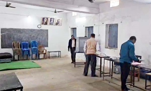 अधिकारियों की बड़ी लापरवाही, मतदान केंद्र से नहीं हटाया महापुरुषों की फोटो