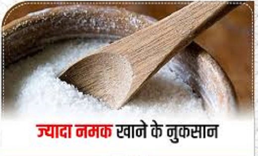 ज्यादा नमक खाने से हाई बीपी और दिल संबंधी बीमारियों का खतरा बढ़ जाता है। ज्यादा नमक खाने से शरीर कई तरह की दिक्कतों का शिकार हो सकता है. . साथ ही हार्ट अटैक,हार्ट फेलियर और किडनी संबंधी कई परेशानियां हो जाती है। इसके साथ साथ ज्यादा नमक का सेवन वाटर रिटेंशन की समस्या भी पैदा करता है और इसमें शरीर में पानी जमा होने लगता है और हाथ पैर, टखने और अन्य जोड़ों पर सूजन आ जाती है।