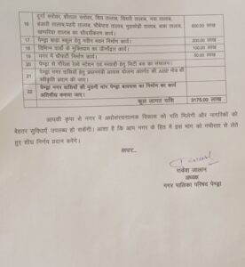 ग्रहस्थी स्टोर से दुर्गा मंदिर तक गौरव पथ निर्माण कार्य के लिए 2 करोड़ 50 लाख रुपए, दुर्गा चौक से दुर्गा सरोवर तक गौरव पथ निर्माण कार्य के लिए 2 करोड़ रुपए, तेंदुपारा देवी चौरा जीर्णोद्वार कार्य के लिए 10 लाख रुपए, पेण्ड्रा में अतिथि विश्राम गृह का निर्माण कार्य के लिए 2 करोड़ रुपए, दुर्गा सरोवर, शीतला सरोवर, शिव तालाब, सिंघरी तालाब, नया तालाब, बंजारी तालाब, पंडरी तालाब, चौबेपारा तालाब, मुड़फोढ़ी तालाब, बाबा तालाब, खम्परिया तालाब का सौदर्याकरण कार्य के लिए 6 करोड़ रुपए पेण्ड्रा बाड़ा स्कूल हेतु नवीन भवन निर्माण कार्य के लिए 2 करोड़ रुपए,विभिन्न वार्डों के मुक्तिधाम का जीर्णोद्वार कार्य के लिए 1 करोड़ रुपए, नगर में चौपाटी निर्माण कार्य के लिए 50 लाख रुपए सहित कुल 31 करोड़ 75 लाख रुपए की मांग की है। साथ ही पेण्ड्रा से गौरेला रेल्वे स्टेशन एवं मरवाही हेतु सिटी बस का संचालन एवम पेण्ड्रा नगर वासियों हेतु प्रधानमंत्री आवास योजना अंतर्गत की AHP मोड की स्वीकृति प्रदान करने की मांग की है।