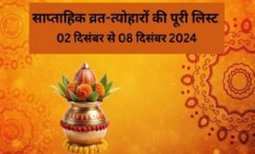 Saptahik Vrat Tyohar List, 2 to 8 December 2024: दिसंबर मास का पहला सप्ताह व्रत त्योहार की लिहाज से बेहद शुभ माना जा रहा है। दरअसल इस सप्ताह वैनायकी गणेश चतुर्थी, विवाह पंचमी, चंपा षष्ठी व्रत, भानु सप्तमी व्रत आदि कई प्रमुख व्रत त्योहार भी किए जाएंगे। व्रत त्योहार के साथ इस सप्ताह शुक्र मकर राशि में गोचर करने वाले हैं और मंगल ग्रह कर्क राशि में वक्री चाल चलने वाले हैं। आइए जानते हैं दिसंबर महीने के पहले सप्ताह में पड़ने वाले प्रमुख व्रत त्योहार के बारे में…