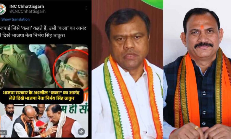 छत्तीसगढ़ कांग्रेस ने सोशल मीडिया प्लेटफॉर्म X पर एक वीडियो साझा करते हुए दावा किया कि अश्लील डांस के दौरान BJP नेता निर्भय सिंह ठाकुर भी वहां मौजूद थे। कांग्रेस ने पोस्ट में तंज कसते हुए लिखा कि भाजपा जिसे ‘कला’ कहती है, उसी ‘कला’ का आनंद लेते हुए उसके नेता नजर आए। इस दावे के सामने आते ही प्रदेश की राजनीति में बयानबाजी का दौर शुरू हो गया।
