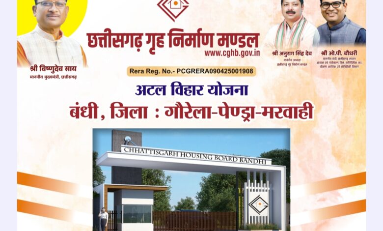 दीपावली पर घर का तोहफ़ा — पेंड्रा के बंधी में अटल विहार योजना के तहत स्वतंत्र आवासीय भवनों की ऑनलाइन बुकिंग शुरू..