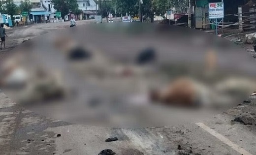 3 गायों को हाईवा ने कुचला, 11 मवेशियों की मौत, 2 की हालत गंभीर