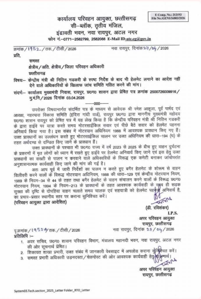 छत्तीसगढ़ में हेलमेट नियम सख्त: पीछे बैठने वाले को भी पहनना होगा कवच, शोरूम संचालकों पर भी गिरेगी गाज