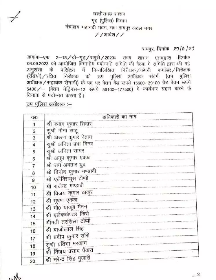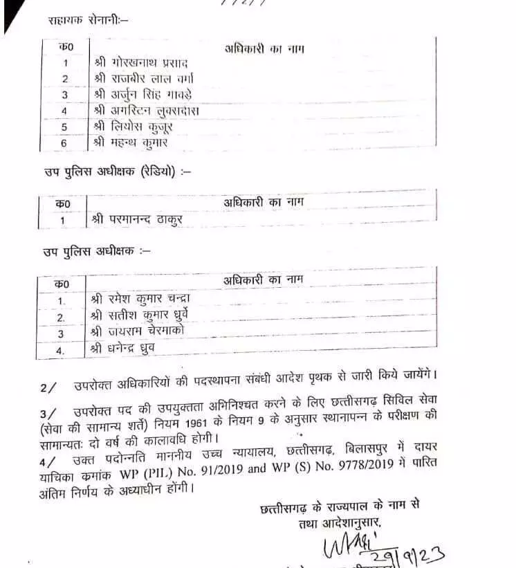 रायपुर. छत्तीसगढ़ गृह विभाग ने 31 इंस्पेक्टरों की प्रमोशन लिस्ट जारी की है.