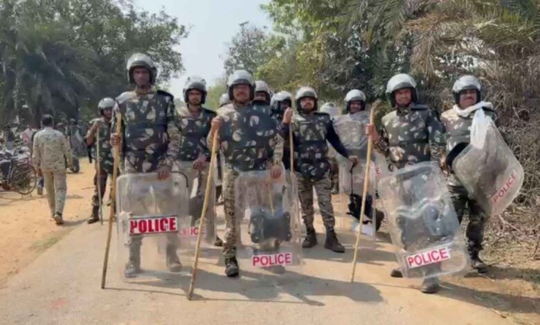Kondagaon: कोकोड़ी मक्का प्रोसेसिंग प्लांट के विरोध में 12 घंटे से प्रदर्शन जारी, भारी संख्या में पुलिस बल तैनात