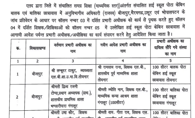 बीजापुर: पोर्टा केबिन घोटाले में बड़ा एक्शन, 24 अधीक्षक पद से हटाए गए